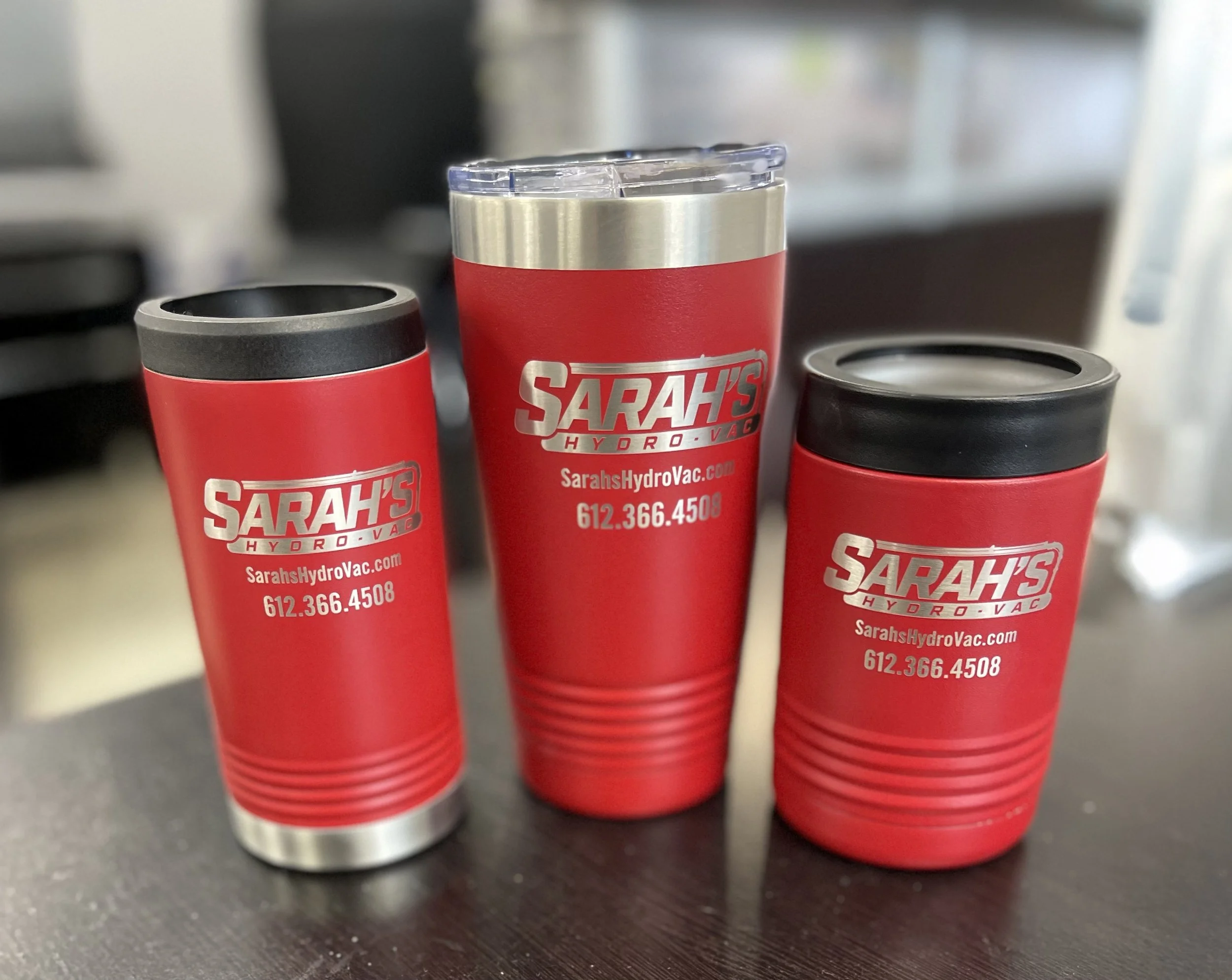 Mugs, insulated cups, water bottles, glassware, bottle & can coolers, mouse pads, chargers, power banks, USB flash drives, keychains