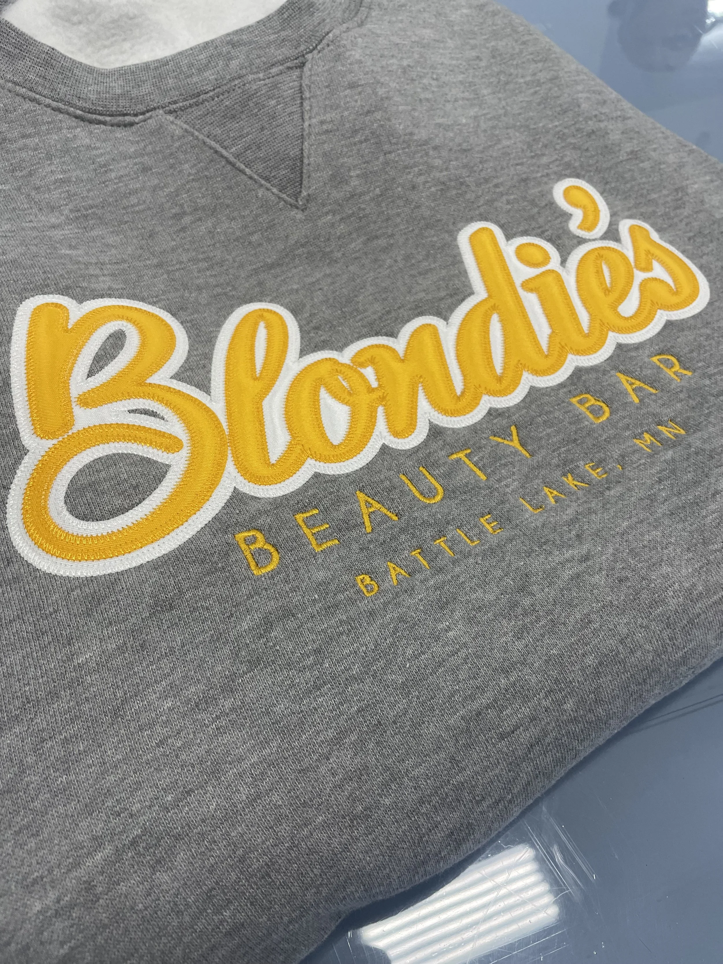 Screen printing, full color digital printing, embroidery, patches, and heat transfer vinyl.